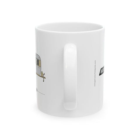 Illustrated in fine detail, a vintage Boles-Aero trailer and manufacturer emblem adorn the front and back of this classic hot beverage mug.
