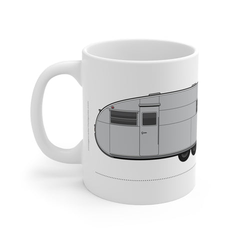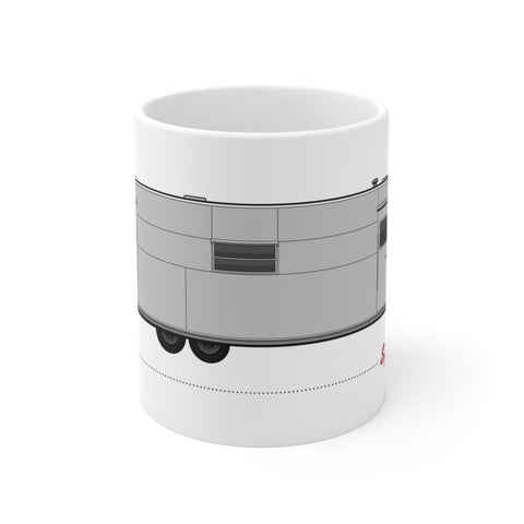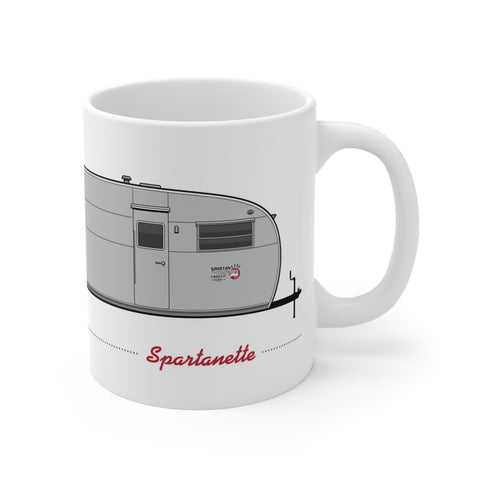 Illustrated in fine detail, a vintage Spartanette wraps around this classic hot beverage mug.