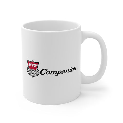 Reproduced in fine detail, a vintage Kit manufacturer logo adorn this classic hot beverage mug.