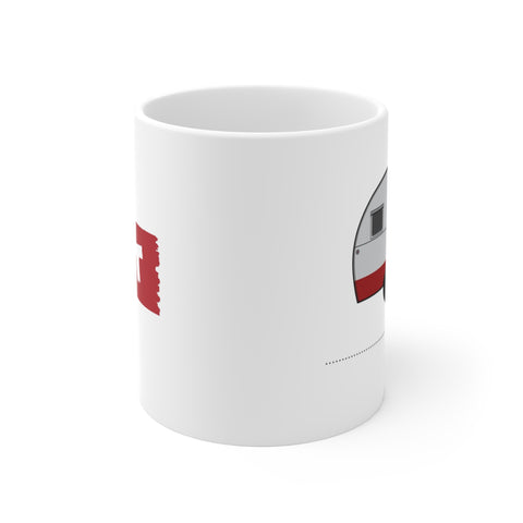 Illustrated in fine detail, a vintage Kit trailer and manufacturer logo adorn this classic hot beverage mug.